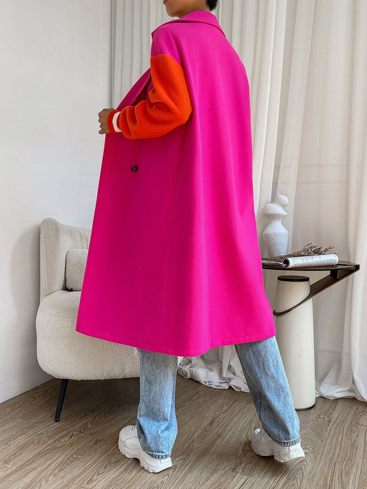 Mantel mit Farbblock, Drop Shoulder doppelten Knopfleisten