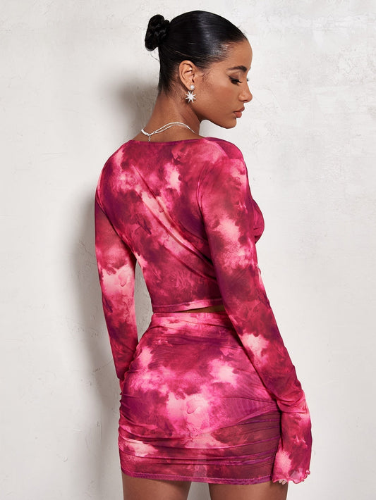 BAE Crop Top mit Batik, Drapiertem Kragen, Volant Ärmeln