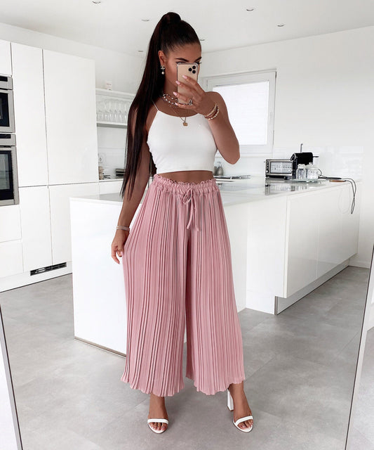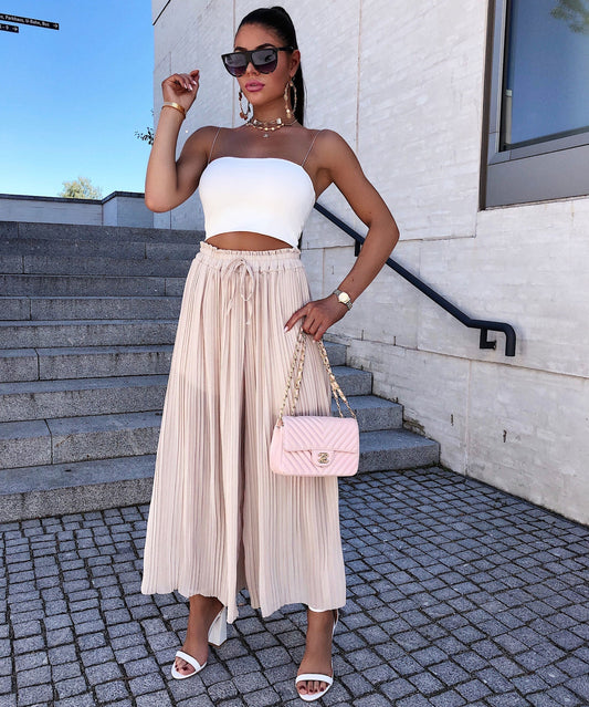 Plisitaj pantalonoj Mira Bejĝkoloraj
