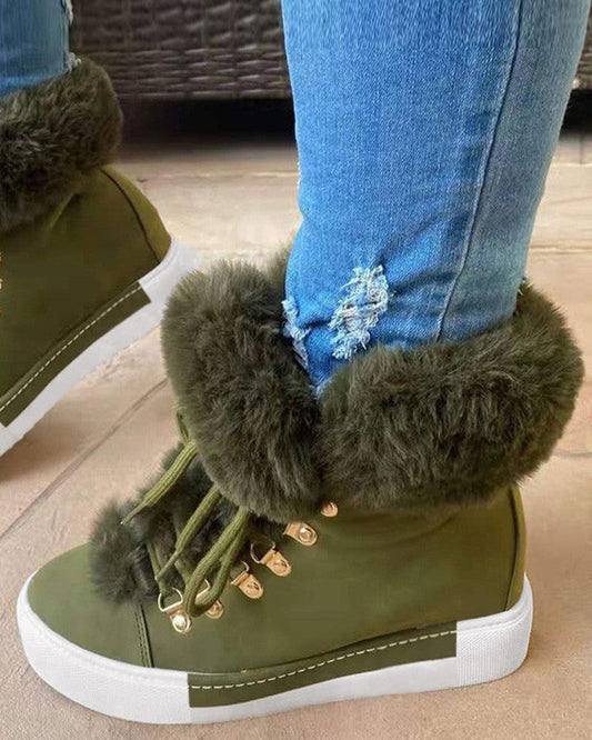 Neĝbotoj™ - Ŝnure subŝtofitaj maleolbotoj kun lanugaj detaloj