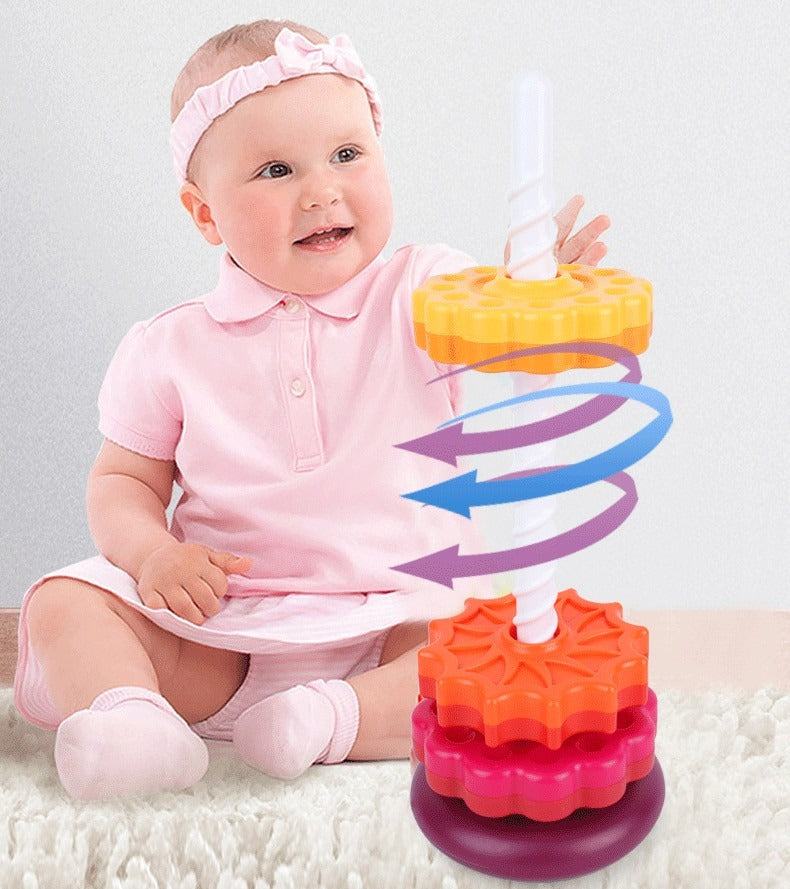 Dieses tolle Drehspielzeug macht nicht nur Spaß, sondern ist auch ein tolles Lernspielzeug für deine lieben Kinder. Durch das Spielen mit dem Drehturm können deine Kinder ihre Hand-Augen-Koordination, ihre Geschicklichkeit und ihre motorischen Fähigkeiten verbessern. Außerdem können sie damit die Farberkennung und die taktile Erkundung lernen.